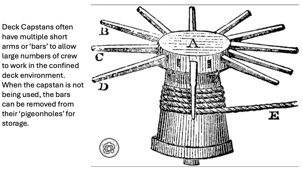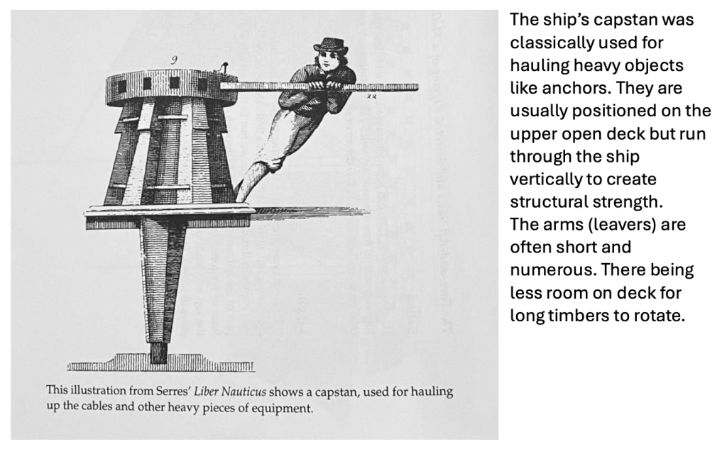 Capstans and winches were vital maritime dockland machines before the age of steam, diesel and petrol. Prior to the widespread use of cast and wrought iron, they were predominantly made of wood. They were the way big heavy objects were lifted and moved.