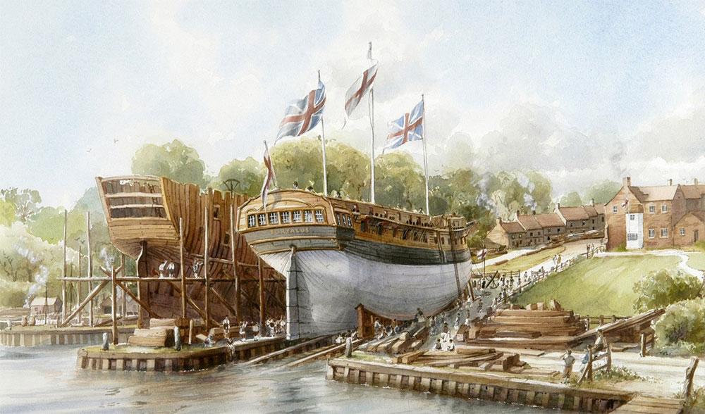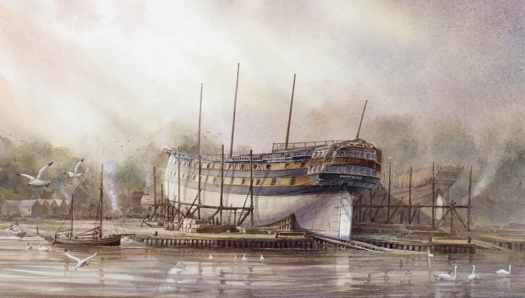 From 1744 to 1815, 55 ships were built on contract for the Royal Navy including 3 that fought at the Battle of Trafalgar, HMS Euryalas, HMS Agamemnon and HMS Swiftsure. The largest was a 74 gun, HMS Spencer, 180ft on the upper deck which was launched in 1800.